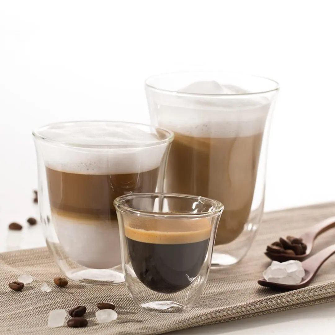De'Longhi Mix Glasses Set - набор ручной работы для эспрессо, капучино и латте из 6 чашек. Благодаря данному набору использование вашей кофемашины будет приносить еще больше удовольствия. Набор выполнен из боросиликатного стекла с двойными стенками из термо-стекла.