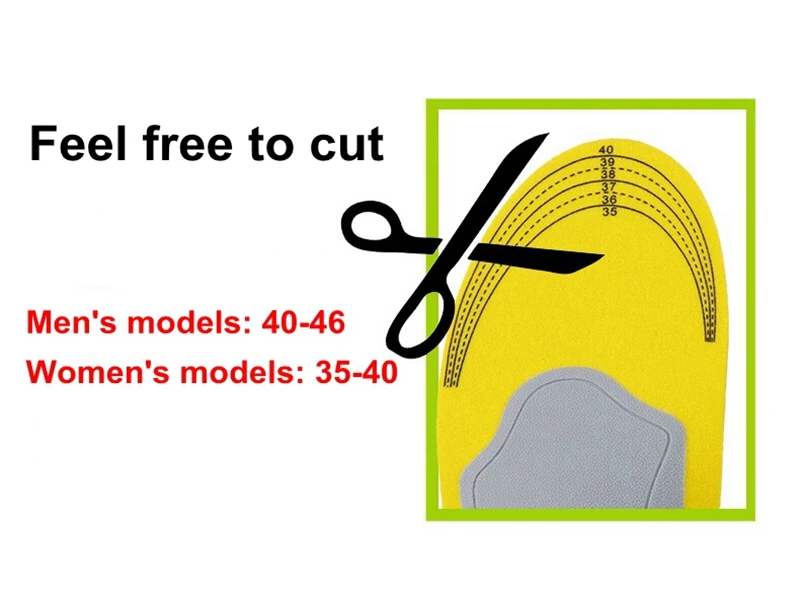 Добро пожаловать в наш магазин Дорогие друзья, При размещении заказа, пожалуйста, обратите внимание на следующие моменты! Название: Спортивные Повседневные стельки Материал: EVA + дышащая сетка + эластичный дышащий хлопок Функция: всасывающие/впитывающие стельки Сезон: Весна, Осень, Зима, Лето Размеры, большие размеры: 35-40 ярдов (22,5-25,5 см), большие размеры 41-46 ярдов (26-28,5 см) Доставка: Бесплатная доставка В комплект входит: 1 пара стелек Примечание: Вы можете самостоятельно отрезать стельку нужного размера. Два способа резки стельки: 1. Измерьте длину стопы, затем найдите размерную линию на стельке и порежьте ее немного дольше, чем нога. 2. Используйте подходящий размер стельки, поместите его на новую стельку, затем медленно порежьте (Вы также можете добавить примечание к вашему заказу, чтобы сообщить нам свои вопросы и требования)