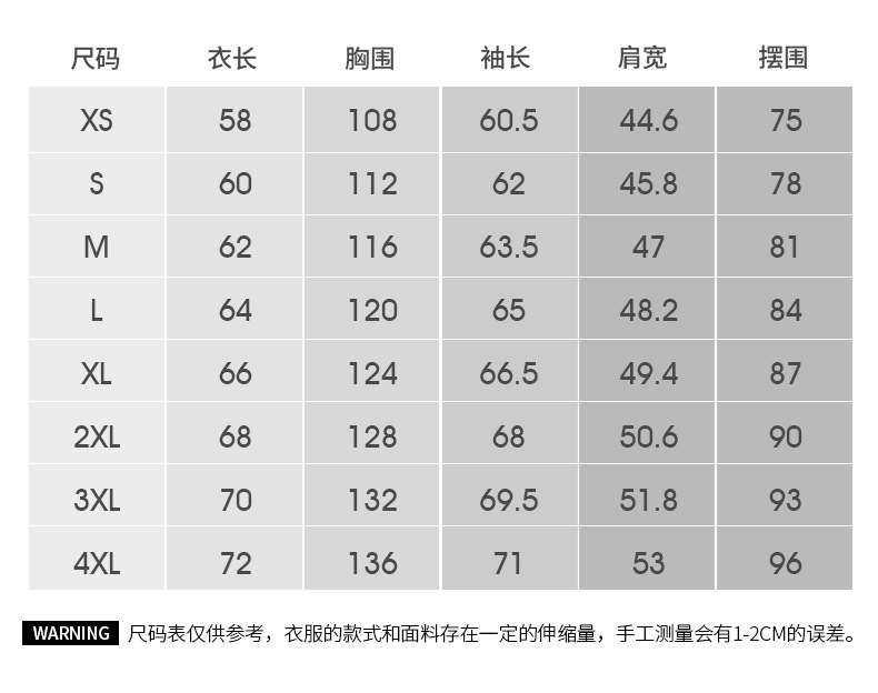 Примечание 1: эта куртка Азиатского размера, Азиатский размер обычно на 2-3 размера меньше, чем Европейский/американский размер,