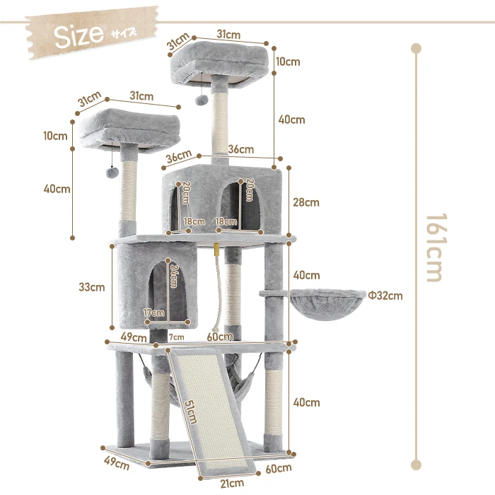 ·Домик для кошек в помещении: первый домик на дереве для кошек создан для лечения расстройства кошек, поэтому в нем выросли многоуровневые кошачьи деревья и башни, которые позволяют вашим кошкам играть, отдыхать, упражнения дома. Лестница добавляет больше уровней для лазания, а кровать-гамак-качели под большими платформами-лучшее место для котят. Многочисленные когтеточки либо покрыты сизалевой веревкой, либо промывочная ткань удовлетворит кошачий характер заточки когтей с различными ощущениями царапания