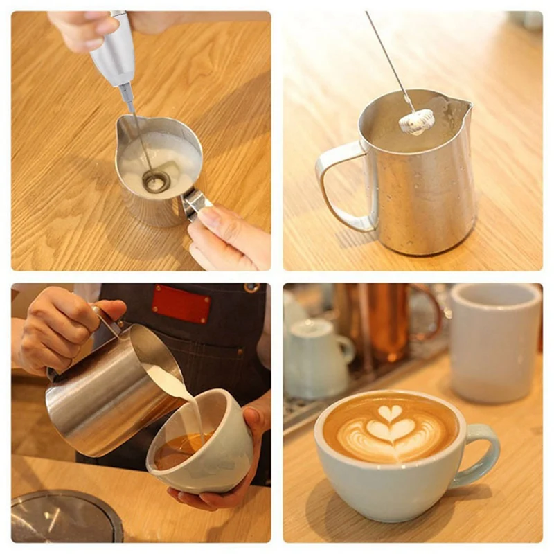 Этот венчик для взбивания молока крепкий, положите в 3 батарейки AAA и просто потратьте в течение 15 - 20 секунд, чтобы сделать молоко различными жидкостями, в том числе: молоко для кофе, латте, капучино, горячий шоколад, коктейли, молочные коктейли, протеиновые коктейли, ультрастойкий кофе, латте, матча-чаи, перемешивание яиц, Распад комков в соусах и т. Д.