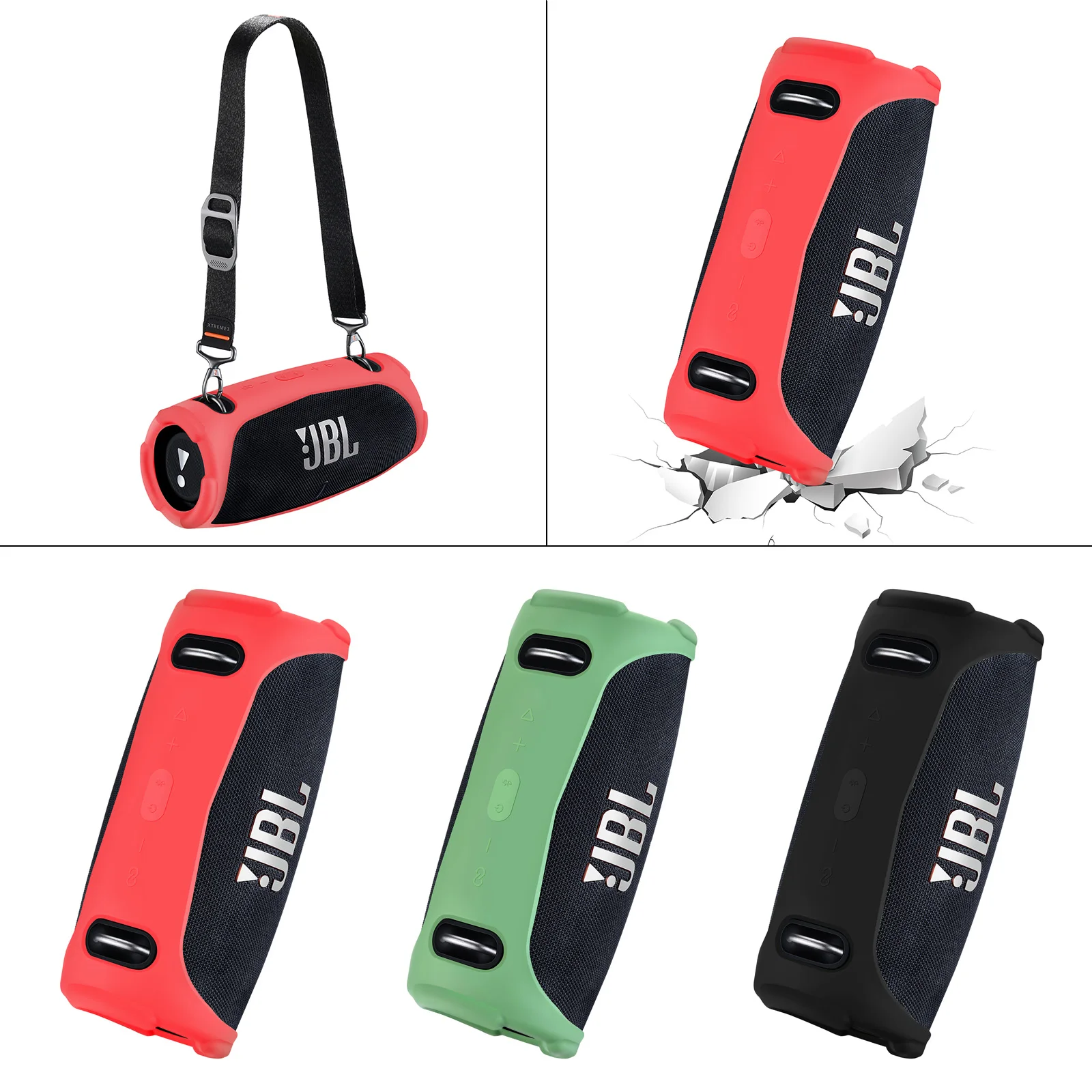 ✅Предназначен для динамиков JBL Xtreme 3. ✅Цвет: черный, красный, зеленый ✅Размер: 313*139*118 мм ✅Вес: 165 г ✅Прочный силиконовый материал, прочный и прочный. ✅Продуманный дизайн: с кнопками управления на стороне для управления громкостью вверх и вниз, Bluetooth, включение/выключение питания для динамика JBL Xtreme 3, не снимая его.