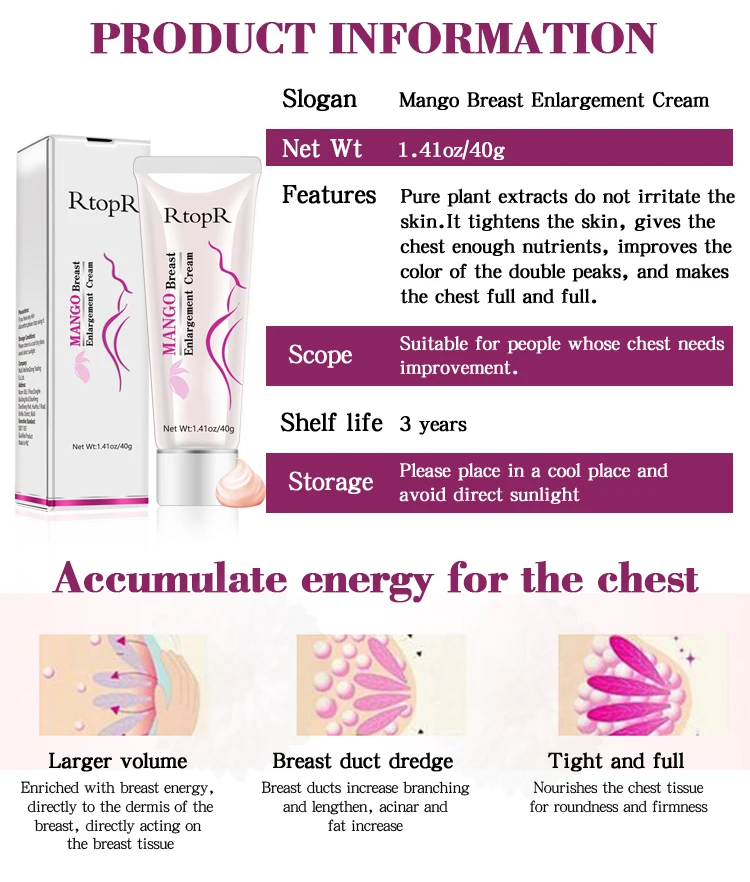 Чистые растительные экстракты не раздражают кожу. Он может затянуть кожу, очистить канал груди, дать достаточно питательных веществ, улучшить цвет двойных пиков, сделать грудь полной и полной, улучшить мягкость, восстановить прямолинейность, И создать полную и привлекательную грудь.