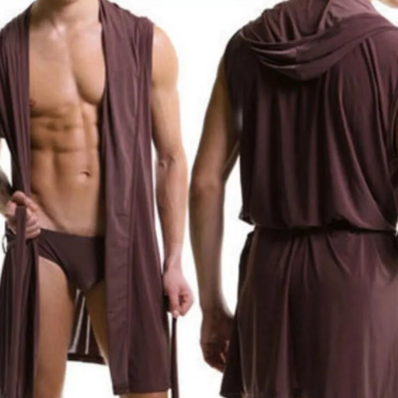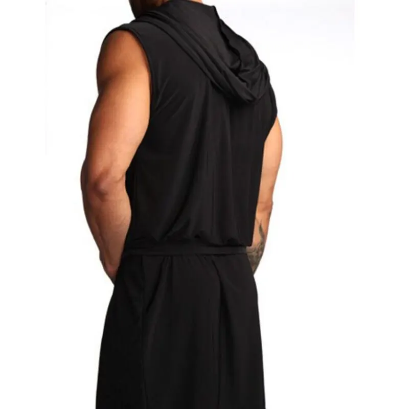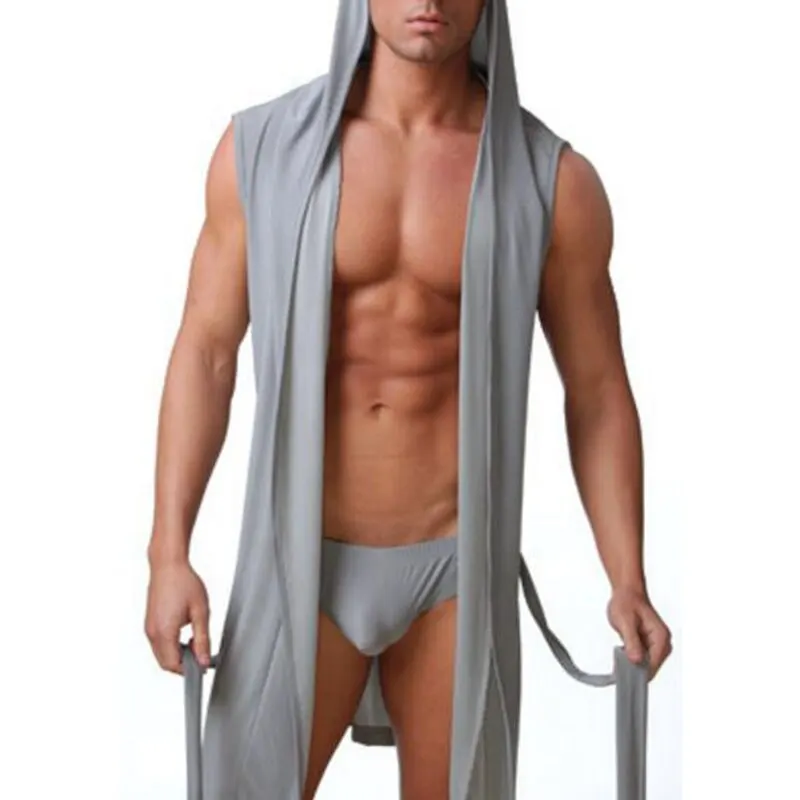 Мужской Халат без рукавов, шелковая скользкая Пижама, мужской Халат с капюшоном, мужской Ультратонкий Домашний халат.