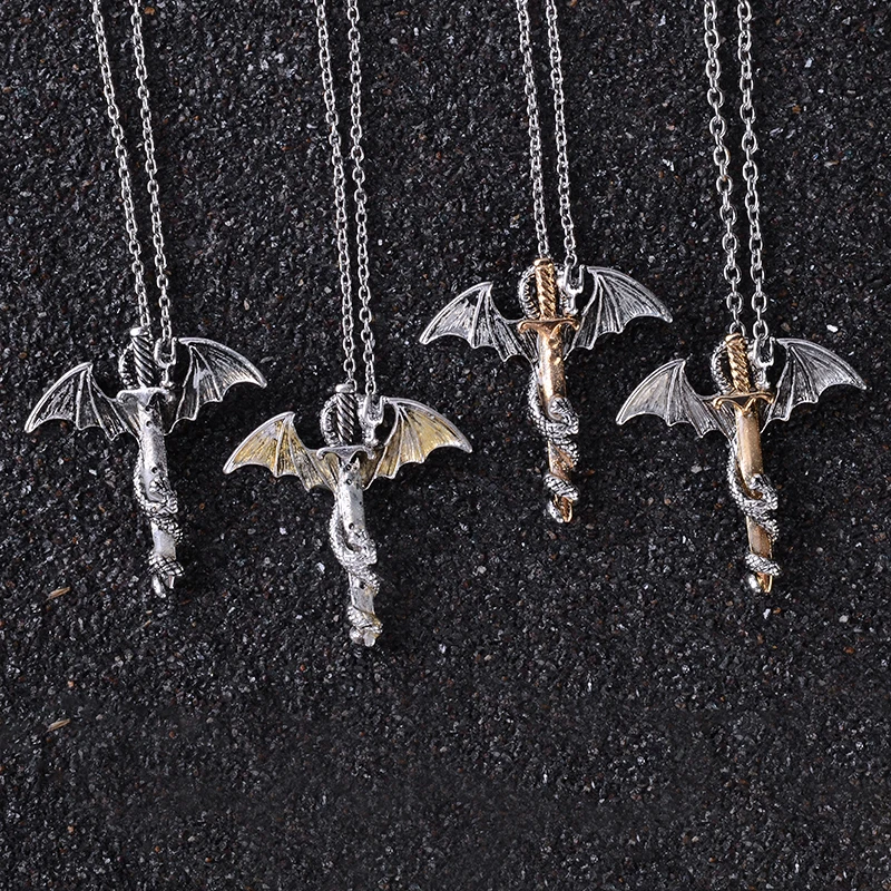 Кулон с мечом дракона, ожерелье, светящееся в темноте, Ретро стиль, панк, светящийся дракон, длинная цепочка, ожерелье для мужчин и женщин, ювелирные изделия в стиле хип-хопUS $1,67