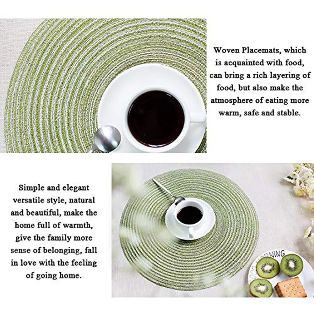 Хорошая теплоизоляция: хорошая теплоизоляция для защиты вашего обеденного стола от повреждений. Круглые хлопковые подставки против царапин: Защитите ваш стол от царапин и пятен, также не легко скользить. Не используйте жидкость. Красивые салфетки для украшения обеденного стола, могут произвести впечатление на ваших гостей. Коврики практичны, и вы можете использовать их в обеденном зале, кухне, отеле, деловом офисе каждый день. Инструкции по очистке: Очистите влажной тканью, пожалуйста, используйте мягкое моющее средство для деликатной ручной стирки, положите ее в плоскую, чтобы высохнуть, Избегайте прямых солнечных лучей.