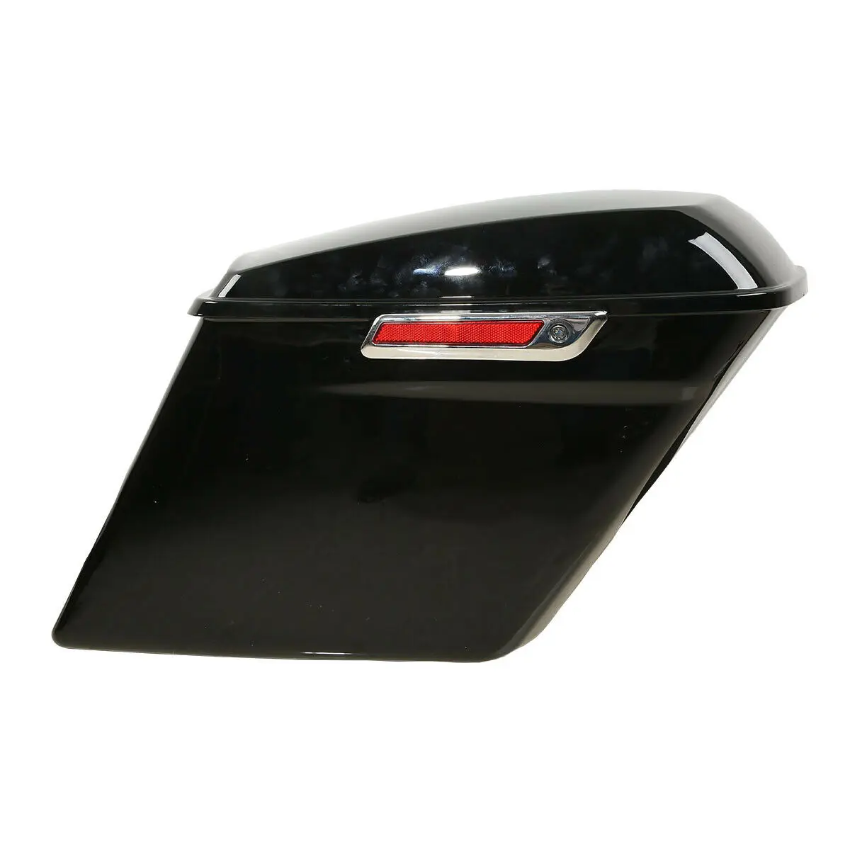 Седельные сумки растягиваются на 5 дюймов дольше, чем на складе, чтобы прикрыть глушитель спереди и придать этому растягивающемуся виду