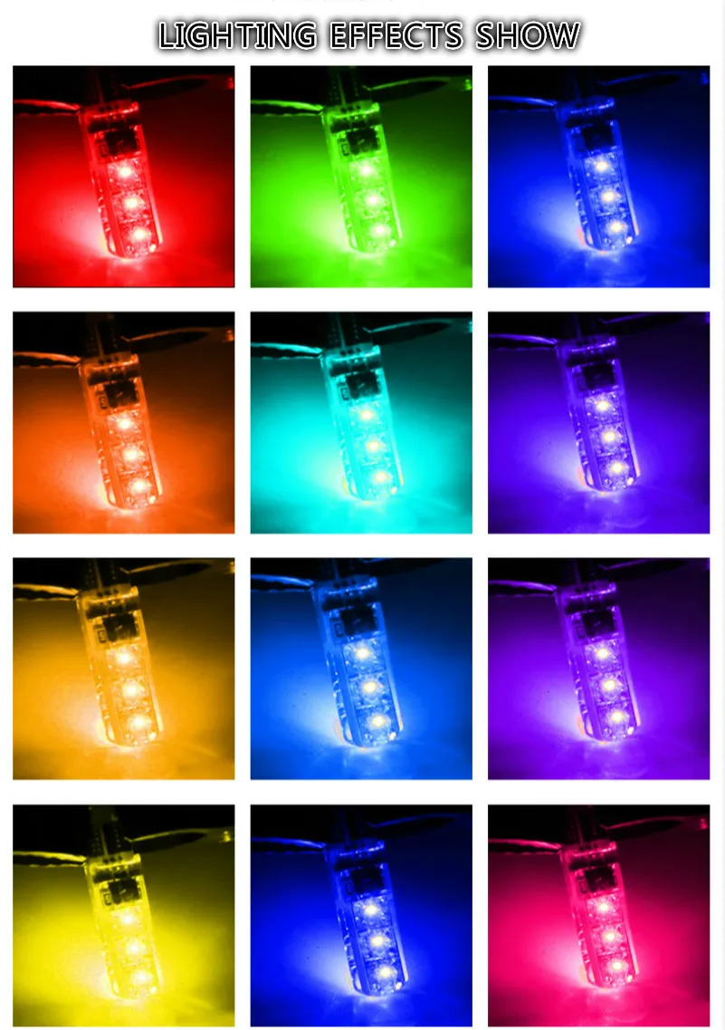 Особенности: Состояние на 100% абсолютно новый Тип разъема: t10 / 192 / w5w Напряжение: 12 В постоянного тока Мощность: 0,6 Вт-1,2 Вт/лампа (12V @ 0.05A-12V @ a) Размеры: Длина: 33 мм, ширина: 9,5 мм Кол-во светодиодов: 6SMD Светильник угол: 360 градусов Стробоскопическая вспышка Быстрое включение/выключение времени отклика 6 супер RGB цветной SMD 360 градусов угол луча может осветить На каждом углу. Высокая эффективность освещения. Длительный срок службы, низкое энергопотребление, Энергосбережения Посылка Содержание: 2 x Автомобильный RGB светодиодный светильник Пульт ДУ (1 шт.); Без розничной коробки, Упаковано в мешок OPP.
