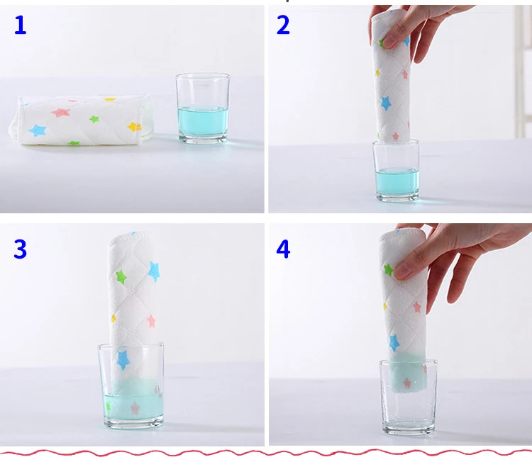 1. Подготовьте кусок подгузника, чашку цветной воды 2. Положите подгузник в воду 3. Положите подгузник в воду 4. Вода быстро высыхает подгузниками, что указывает на то, что подгузник очень впитывает влагу.