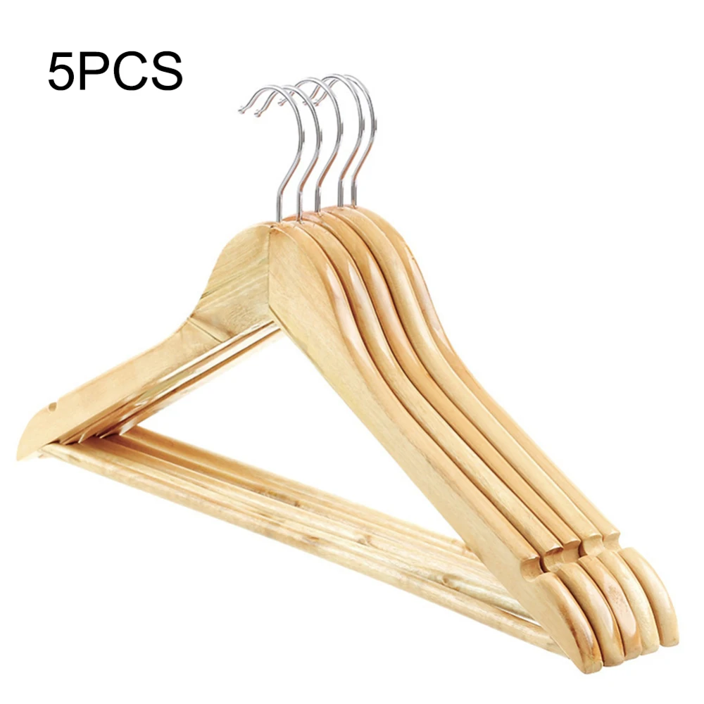 -Упаковка из 5 качественных деревянных вешалок для пальто с штангой. Вырезы для юбки и брюк. Отличная цена на каждый день вешалка.