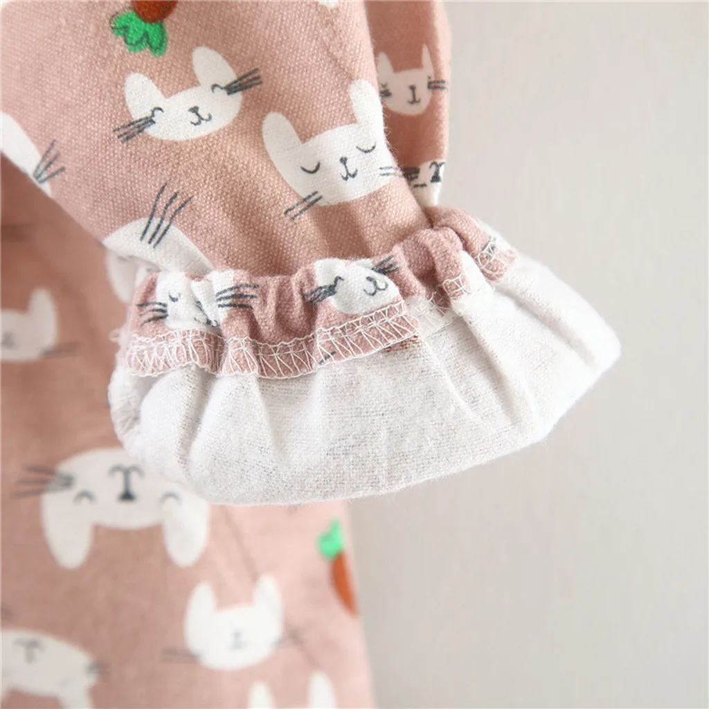 Платья принцессы с длинными рукавами и принтом кролика для маленьких девочек; одежда