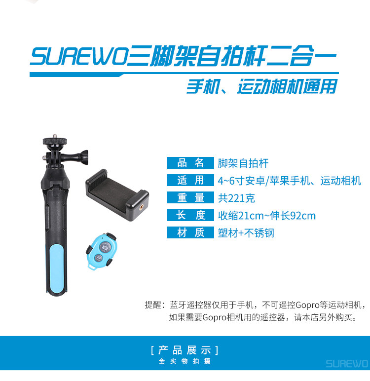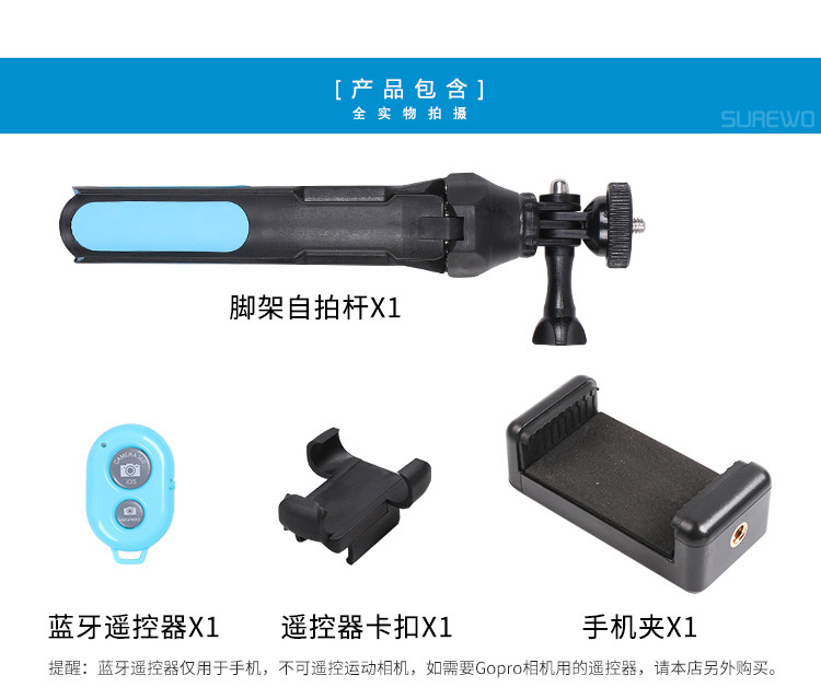 В комплект входит: штатив x1 с пультом дистанционного управления x1 с зажимом x1 (Примечание: камера не включена)