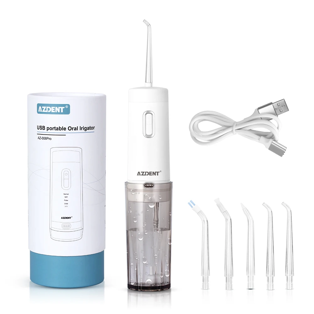 1 комплект Oral Iiirgator посылка включает в себя:-1 х основная машина-5 сменных насадок-1 х USB кабель-1 Руководство пользователя-Дорожный Чехол-1 шт.Советы:2 * Стандартный струйный наконечник1 * наконечник пародонта1 * ортодонтический наконечник1 * наконечник зубного налетаСпецификация:-Бренд: AZDENT-Модель: AZ-008Pro