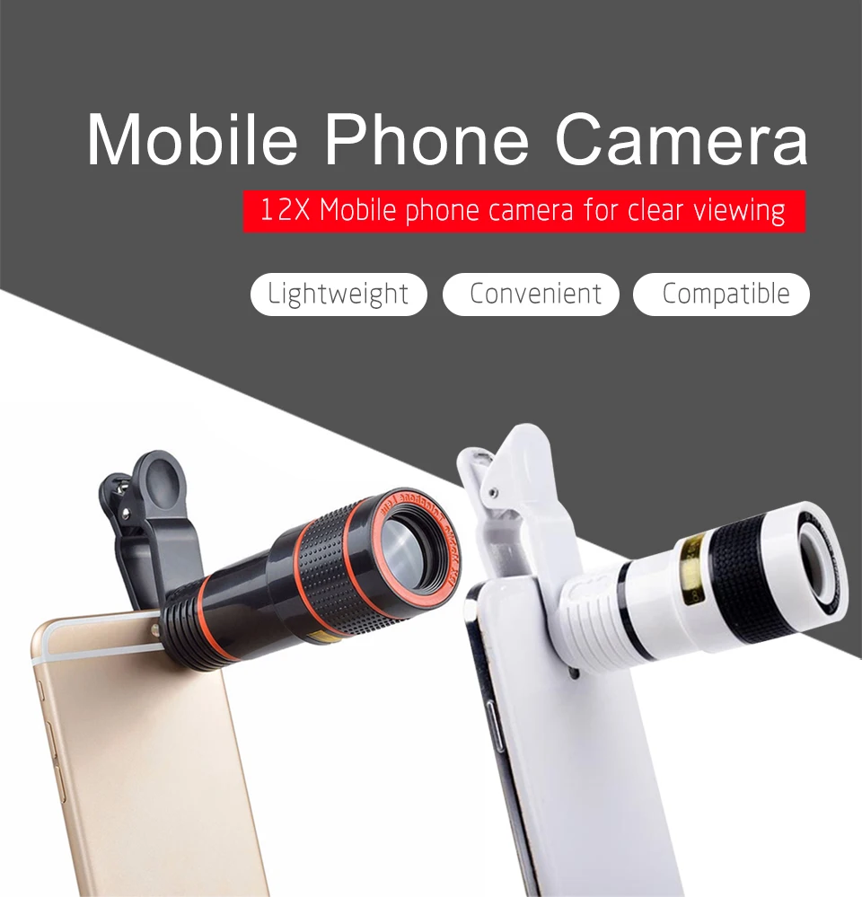Универсальное 12x монокулярное Масштабирование HD оптические Объективы для телефона для смартфона четкое изображение Регулируемый телефото Лен черный белый