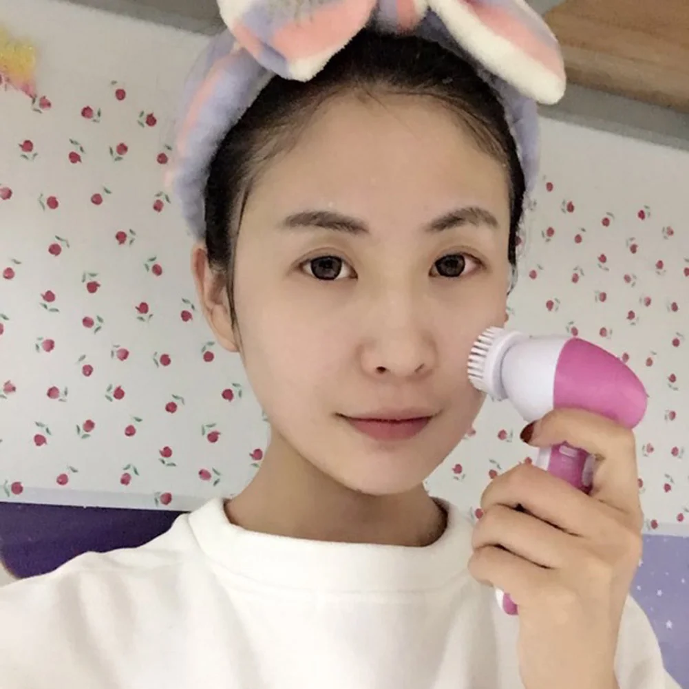 "Характеристики: 1. Питание: 2 батарейки типа АА (не входят в комплект) 2. Условия эксплуатации: температура 10-40'C (50-104'F), влажность 30%-90% 3. Цвет: розовый + белый 4. Размер посылка: 130x130x50mm Посылка включает в себя 1 х Основной блок 5 x насадок: мягкая щетка, массажер для прокатки, губка для макияжа, латексная губка-мягкая, сырая полировка. Примечание: аккумуляторы в комплект не входят. Посылка в том числе 1 * Портативный 7-в-1 Электрический Красота Массажер (светильник синий) 1 * сырой польский аксессуар 1 * латексная мягкая губка 1 * Губка для макияжа 1 * роликовый массажер 1 * короткая мягкая щетка 1 * Длинная ультратонкая кисть 1 * аппликатор пемзы 1 * Руководство пользователя