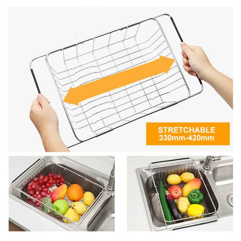 Компактный застегивающийся вакуумный-Стойка для посуды из нержавеющей стали с регулируемыми решетками помещается над раковиной, на столешнице или в раковине и занимает всего лишь часть пространства.