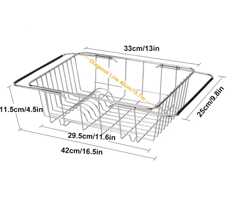 Размер блока (свернутый) 33 см x 25 см x 11,5 см (13inx9. 8inx4. 5in), расширяется до 42 см x 25 см x 11,5 см (16,5 inx9.8inx4.5in). Если вы используете его над раковиной или в раковине, убедитесь, что ваша раковина больше, чем стойка для посуды