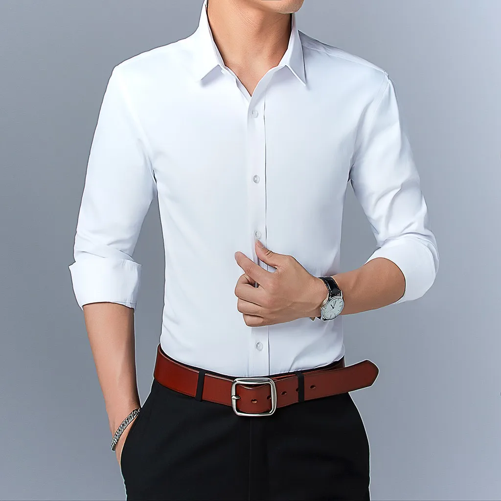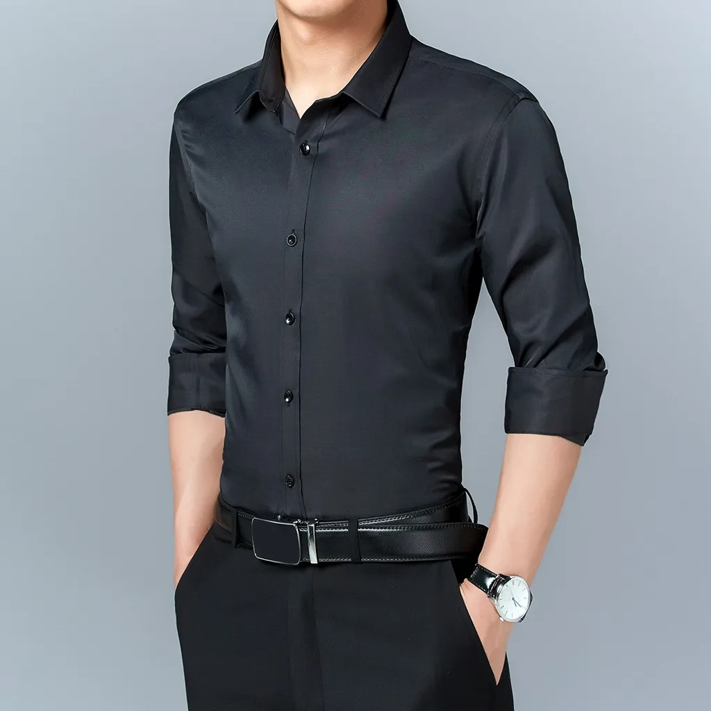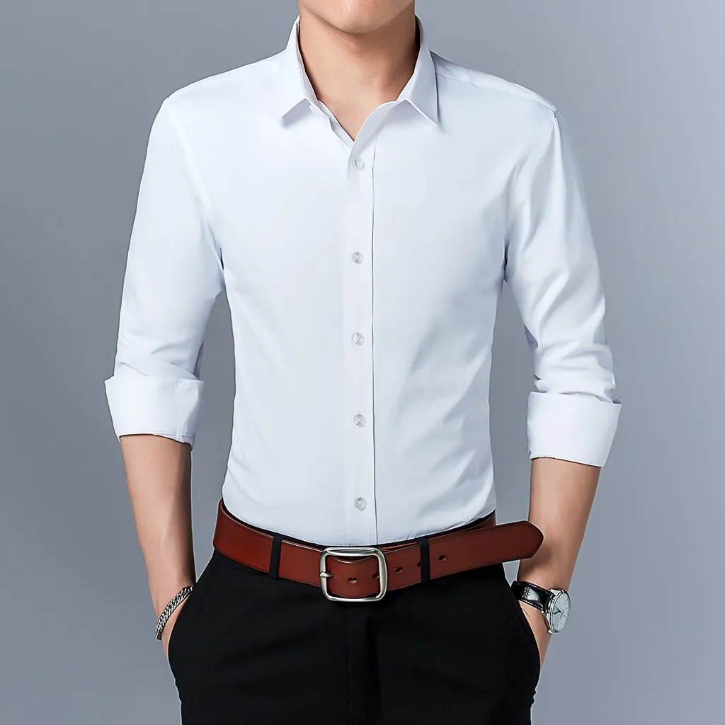 Мужская рубашка с длинными рукавами, в новом стиле, в деловом стиле, однотонная