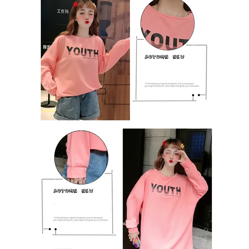 Модный принт Молодежный узор Круглый вырез длинный рукав розовые длинные футболки повседневные женские футболки топы для женщин C324