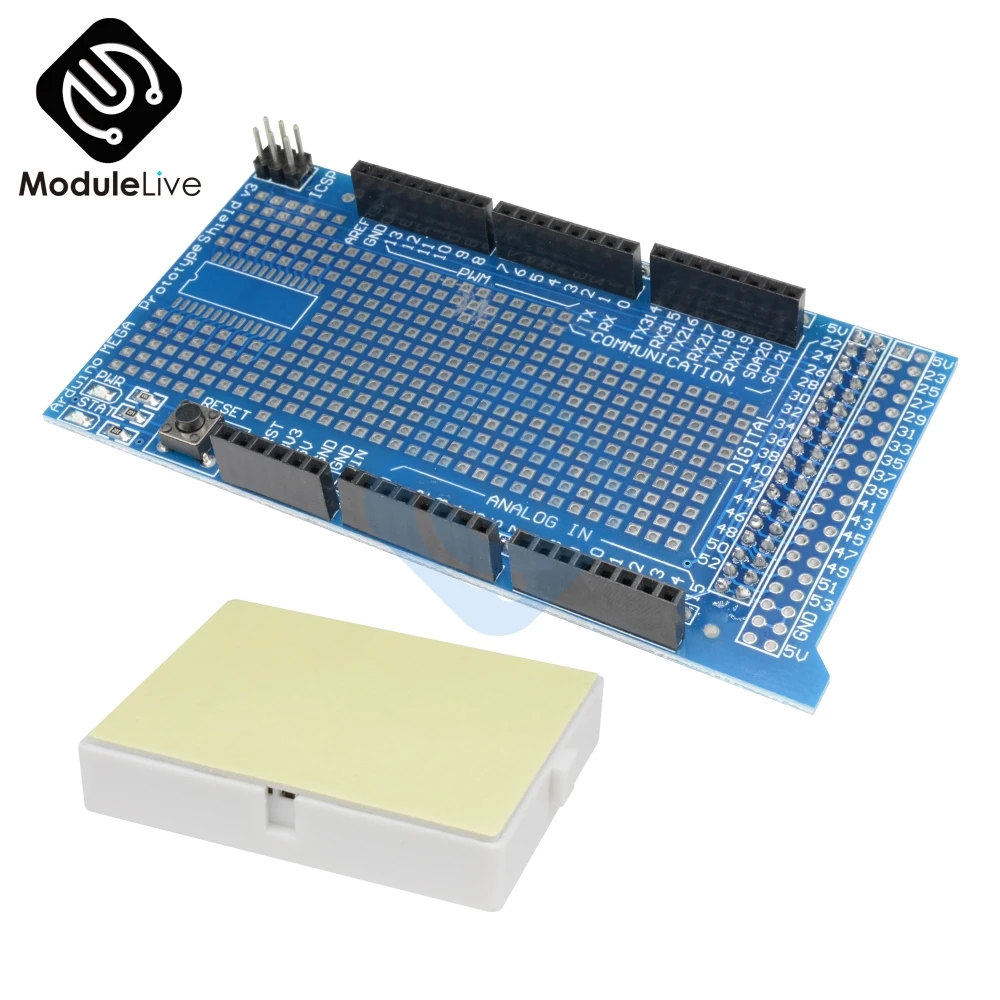 3. плата может получить Мега/MEGA2560 бесшовный контроллер штепсельной вилки, непосредственно припаянный К вышеприведенным компонентам для завершения различных прототипов цепи, вы можете вставить мини хлебную доску, через 7 джемпер однотонной расцветки, чтобы завершить разнообразие эксперимент, доска встроенный индикатор питания и статусные индикаторы и кнопки сброса, Легко узнать MEGA/MEGA2560 предпочтительный Прототип платы расширения контроллера.