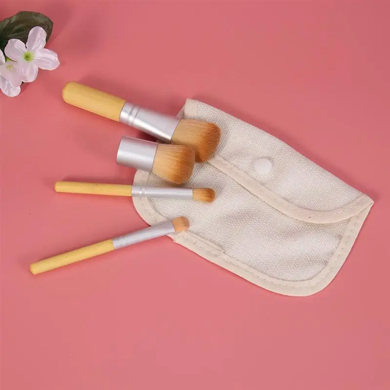 4 шт кисти льняные мешочки бамбуковые ручки кисти для макияжа для путешествий