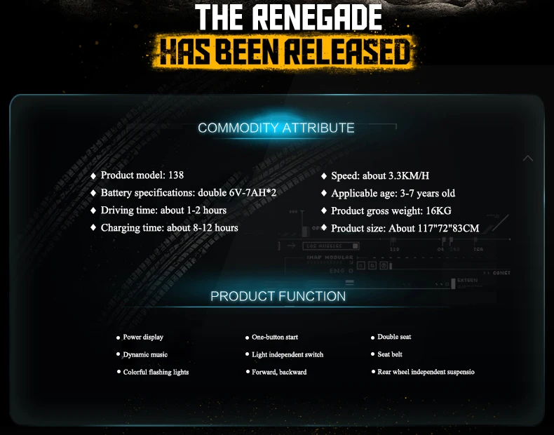2 шт. 6V 7A аккумулятор и зарядное устройствоДвойной привод, одна кнопка запуска, музыка, дисплей электричества, независимая амортизация...
