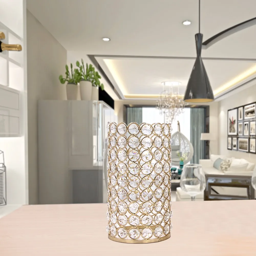 Размещение этого драгоценного золота кристаллический цилиндр на вершине декоративных зеркал или свечи столба. Блестящие граненые хрустальные прозрачные бусины будут сиять как сумасшедшие, как только вы бросите какой-то светильник s на этот роскошный аксессуар, или светильник свечи и светодиодный светильник. Ваш свадебный столик или журнальный столик будут гламурно украшены центральным элементом, чтобы создать окантовку для ваших гостей.