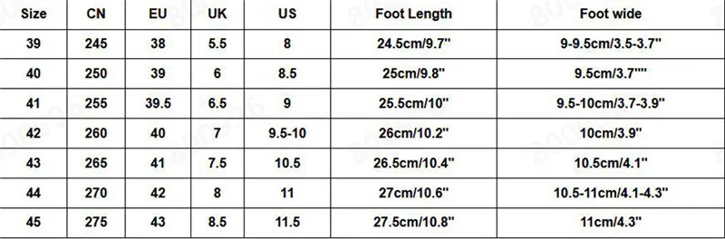 Полезные советы:Различные стили обуви, пожалуйста, выберите размер в соответствии с типом вашей стопы.