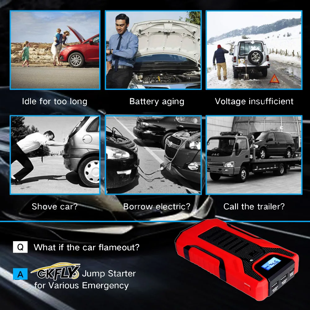 Быстрый запуск 12V бензиновый автомобиль (до 5.0L) и дизельный автомобиль (до 2.5L) за считанные секунды в тех случаях, когда автомобильного аккумулятора. Когда вы путешествуете в небольшом месте, и ваш автомобильный аккумулятор не работает, вы можете использовать этот автомобильный стартер для запуска вашего автомобиля.