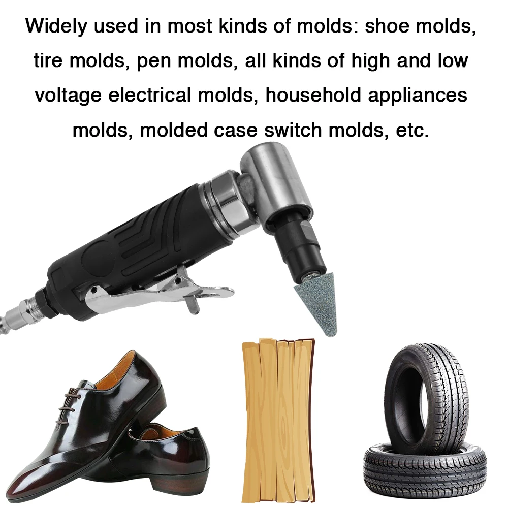 Pneumatic die air 90 degree angle grinder has large scopes of application which is suitable for mould, hardware, die-casting, with comfortable handle and convenient to operate.