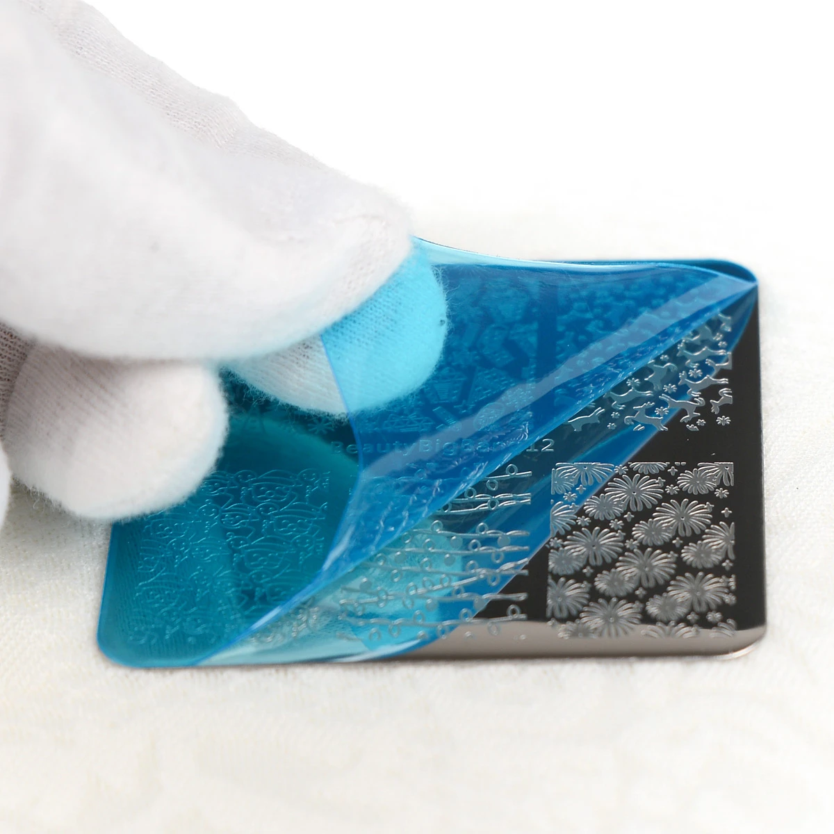 Пластина защищена тонкой прозрачной защитной пленкой, пожалуйста, Снимите пленку перед использованием, чтобы лак для ногтей мог быть передан stamper.