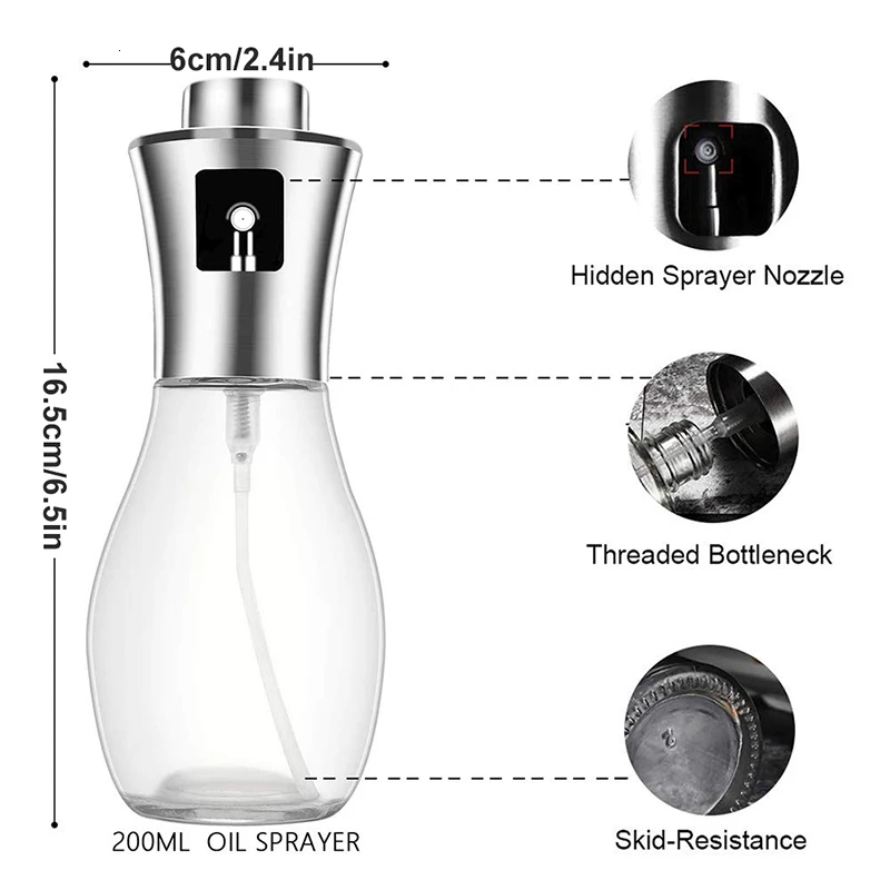 Многоразовые и прозрачно:Распылитель оливкового масла изготовлен из высококачественной крышки из нержавеющей стали и стеклянного горшка пищевого качества с наклонными линиями на дне для противоскользящей устойчивости, ясно, чтобы увидеть емкость и дозировку, и дайте вам знать, что именно внутри.
