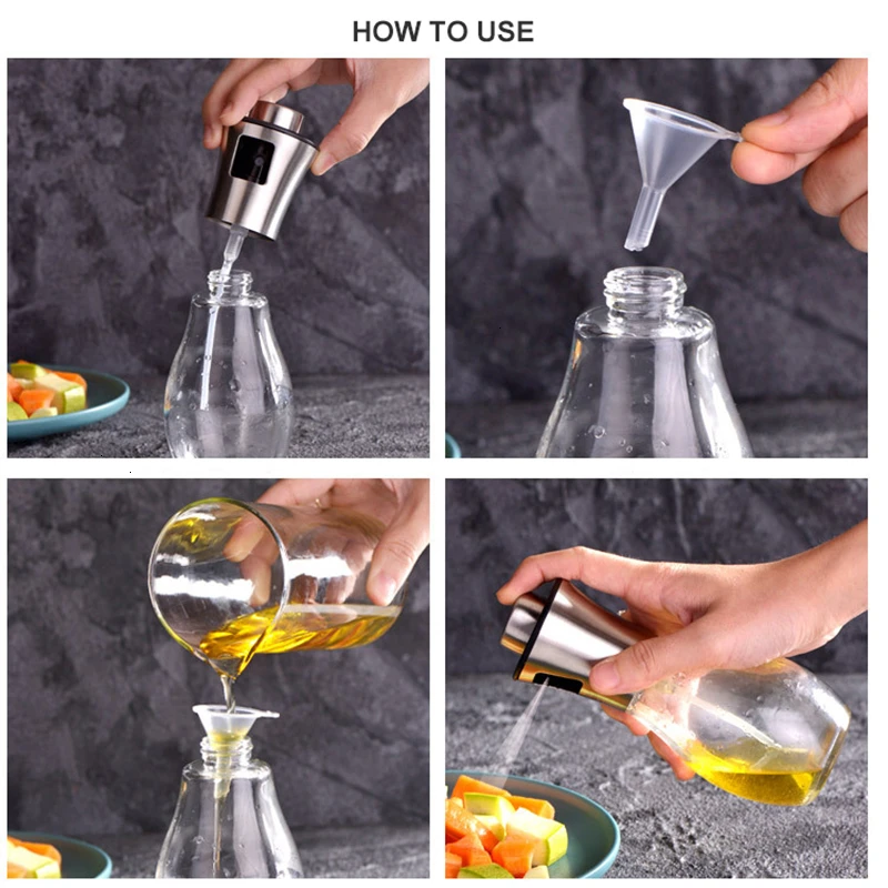 Многоразового использования маслораспределительное устройство:Этот распылитель оливкового масла позволяет контролировать и уменьшать количество масла для приготовления пищи и дает вам удобство и пользу для здоровья более экономичным и экологически чистым способом. Резьбовая крышка делает оливковое масло герметичным и позволяет бутылке быть заполненным.