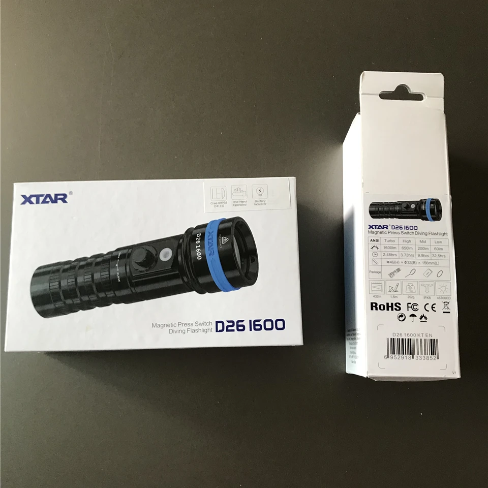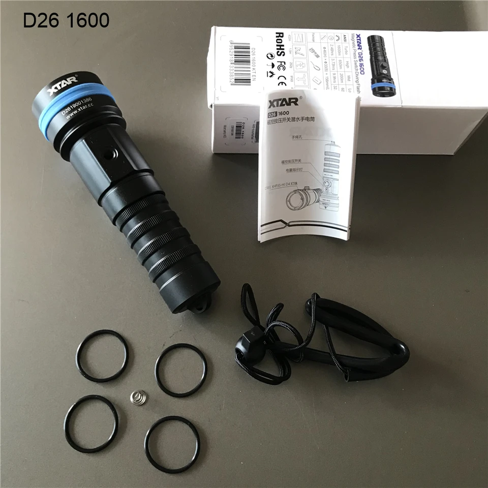 Xtar D26 1600 широкий угол обзора 16340 26650 18650 мощный подводный светильник Cree XHP35 Магнитный Пресс переключатель подводная вспышка светильник s