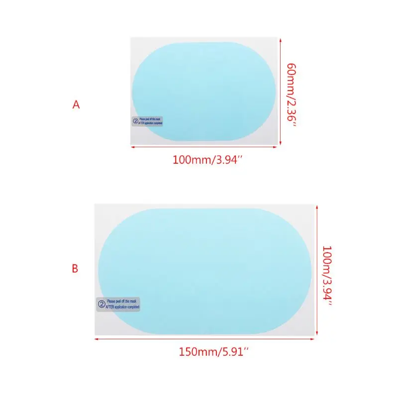 100% абсолютно новые и высококачественные Особенности: анти-туман, антибликовое, анти-туман и непромокаемые, держите зеркало заднего вида чистым во все времена. Прост в использовании. Универсальная дизайнерская зеркальная защитная пленка заднего вида для автомобиля, внедорожника, грузовика, прицепа и т. д., которая подходит для всех стандартных размеров боковых зеркал. Это может уточнить Область обзора для предотвращения возможной опасности, например, поможет вам спроектировать следующее окружение при прохождении или смене полос движения. Он может защитить вашу линию зрения в дождливый день. Это инновация, и она может решить вашу проблему, что вы не можете видеть зеркало reaview четко в дождливый день. Он водонепроницаемый и анти-туман с хорошим защитным эффектом и защищает боковые зеркала заднего вида от нежелательных царапин, пятен, пыли и грязи, Чтобы ваше зеркало заднего вида всегда было чистым. Высокая прочность и высокая пропускаемость ПЭТ + Нано покрытие Защитная пленка с 99% пропускания, анти-туман, антибликовые, анти-туман, водонепроницаемый, непромокаемый, которые эффективно улучшают ваше зрение и лучше просматривают в дождливый или туманный день. Просто потратьте несколько минут, чтобы установить его прямо на зеркало заднего вида, распылите немного воды на зеркало, установите защитную пленку на зеркало и прикрепите его, затем приклейте его небольшим скребком, быстро и легко. Характеристики: Тип изделия: Защитная пленка Тип материала: ПЭТ + Нано покрытие Цвет: синий Размер: A: 60 мм x 100 мм B: 100 мм x 150 мм Количество: 1 пара Примечание: возможны отклонения в 1-3 мм вследствие измерений вручную. Пожалуйста, убедитесь, что вы не возражаете, прежде чем сделать ставку из-за разницы между различными мониторами, изображение может не отражать фактический цвет товара. Спасибо! Посылка: 1 пара непромокаемая зеркальная защитная пленка заднего вида