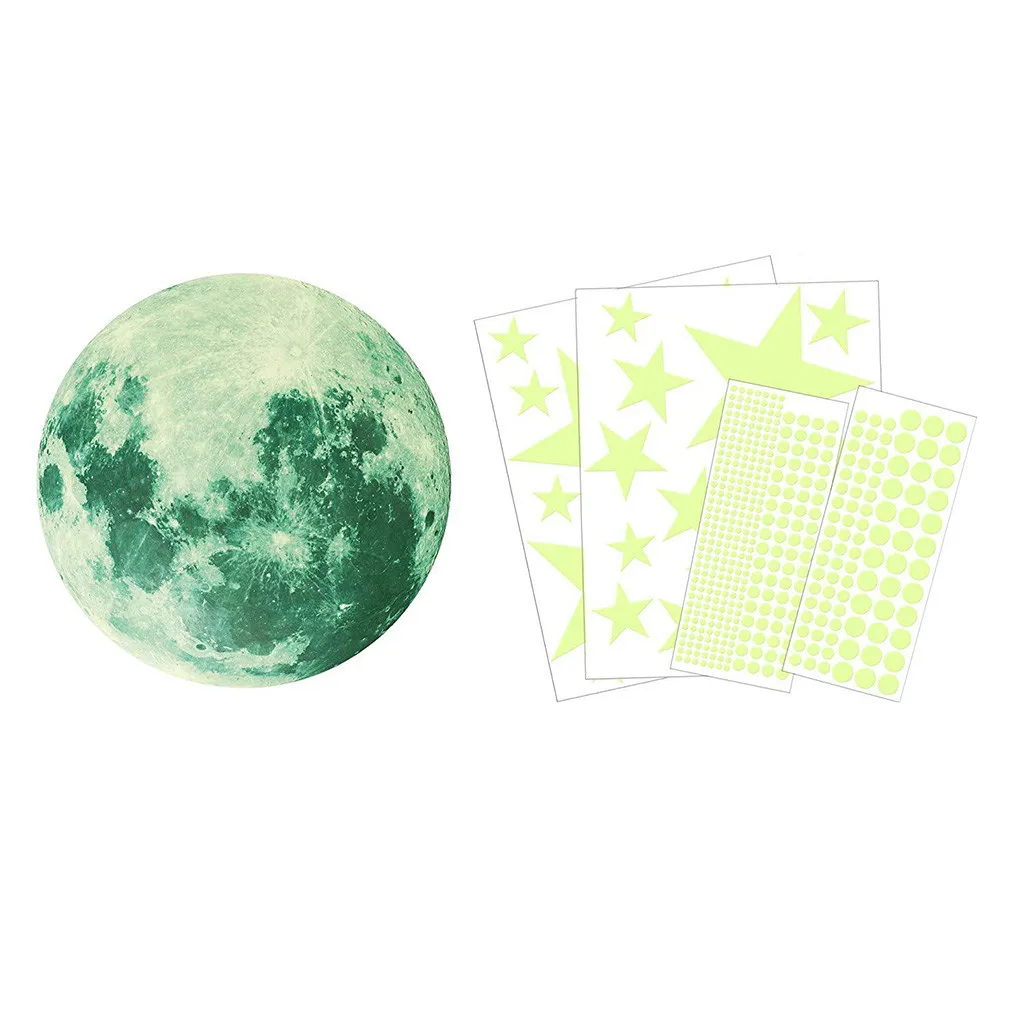 Светится в темноте звезда стены Наклейки круглые Звезды Луна точка светящийся декор для детской комнаты