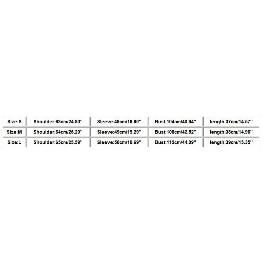 РазмерПлечоРукавБюстДлинаS63 см/24,80''48 см/18,90''104 см/40,94''37 см/14,57''М64 см/25,20''49 см/19,29''108 см/42,52''38 см/14,96''L65 см/25,59''50 см/19,69''112 см/44,09''39 см/15,35''