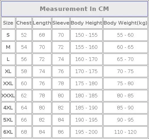 Таблица размеров