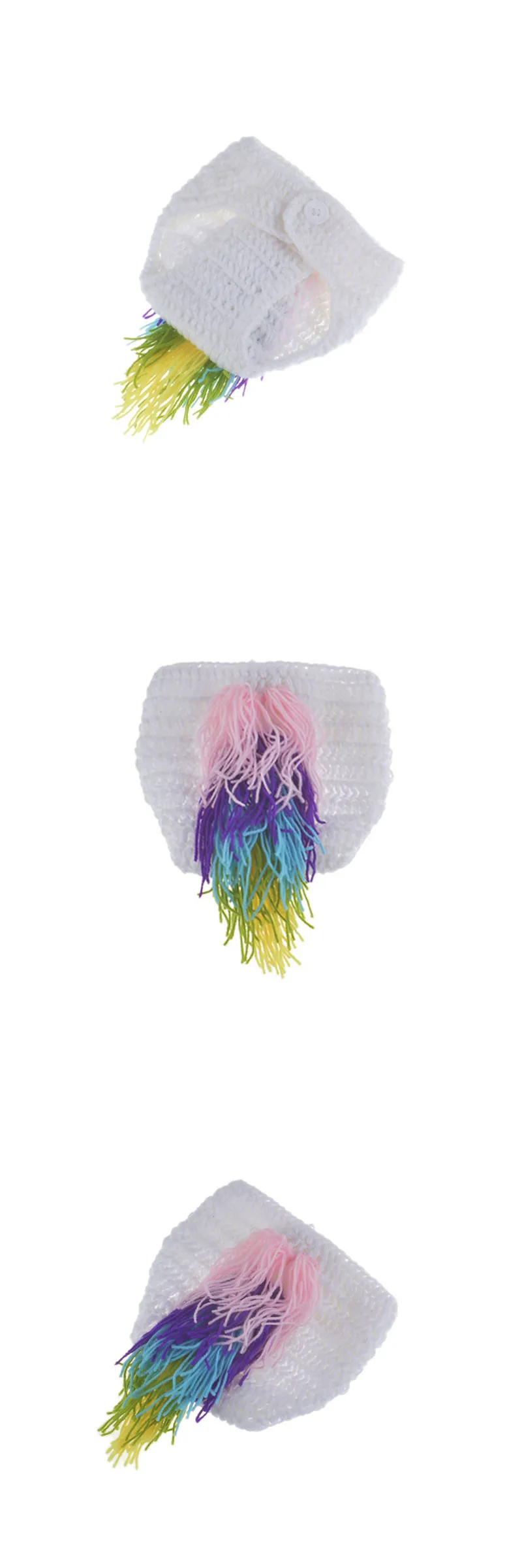 Вязаный крючком костюм маленькой лошади для новорожденных, 0-3 м, вязаные шапочки ручной работы для маленьких мальчиков и девочек, шапочка, подгузник с конским хвостом, реквизит для фотосессии для младенцев