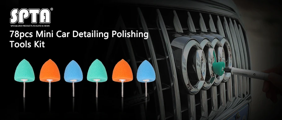 [Функция]: полировальная мини-система SPTA может использоваться в таких областях, как автомобильные фары, противотуманные фары, тормозные огни, дверные ручки, эмблемы, поверхности из стекла с царапинами, внутренние консольные панели или небольшие области. Обеспечить высокое качество ухода за автомобилем опыта при работе на труднодоступных местах, где много полировщиков не могут сделать. И его можно использовать вместе с роторным полировщиком, электрической дрелью и dremel.