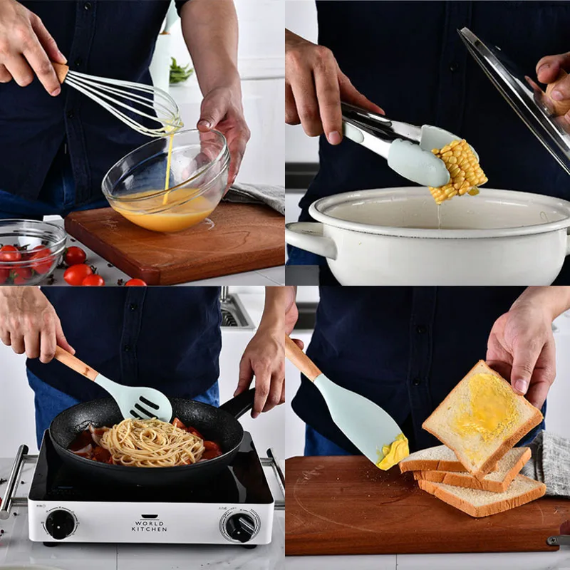Пищевая 1 шт. деревянная ручка инструменты для приготовления пищи Тернер щипцы шпатель ложка для супа антипригарные Кухонные гаджеты силиконовые портативные