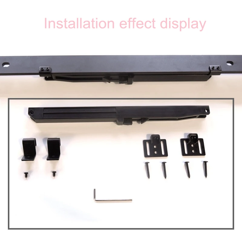 1. Версия без отверстий. : Этот мягкий заслонки скрыт за рельсом, нет необходимости сверлить отверстия на трассе или решить, где установить винты. Просто прикрепите мягкость к задней части трека с помощью крючка и закрепите его с помощью прилагаемого шестигранного ключа. 2. Новый Дизайн Основные характеристики: закрепите на рельсе, нет необходимости сверлить отверстия на рельсе, легче установить и удалить, просто нужно 5 мин, чтобы закончить эту работу, действительно хороший дизайн лучше всего для DIY. 3. Подходит для стандартных плоских рельсовых дверей сарая, работает на любом положении дорожки, Регулируемая Установка, ориентированная на различные ситуации проекта, мягкий закрывающий демпфер, скрытый за Рельсом. 4. Предложение: только мягкое закрытие для одной двери требуется 1 шт./компл., мягкое закрытие и мягкое Открытие для одной двери требуется 2 шт.; В два раза для двойных дверей. 5. Посылка: 1 x механизм мягкого закрытия, 1 привод, 2 x нарезной винт, 2 x зажим на рельсе и 4 x маленький врезной винт, 1 x шестигранный ключ, 1 x Инструкция.
