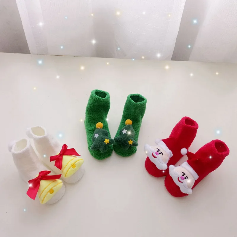 Рождественские носки для малышей 0-12 месяцев, толстые носки для младенцев, милые Носки с рисунком, аксессуары, носки для новорожденных с Санта-Клаусом