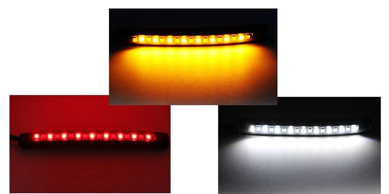 1. Низкая температура, низкое энергопотребление. 2. Отличный продукт, чтобы добавить тормозной светильник, ходовой светильник и сигнал поворота. 3. Супер яркий, высокопроизводительный светодиод. 4. Гибкий и прочный, водонепроницаемый и пыленепроницаемый. 5. Различные цвета освещения указывают на тормоз, бег или сигнал поворота. 6. Легко устанавливается, крепится практически в любом месте с помощью ленты. 7. Универсальный подходит для всех мотоциклов, мотовездеходов, скутеров, снегоходов с DC 12V. 8. Также Универсальный подходит для всех автомобилей SUV Vans Trucks с DC 12V. 9. Место установки: светильник номерного знака. 10. С двухсторонней клейкой лентой, легко установить.