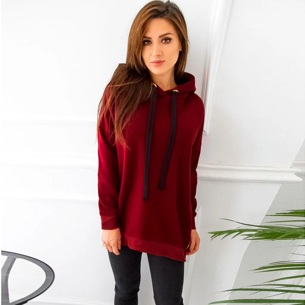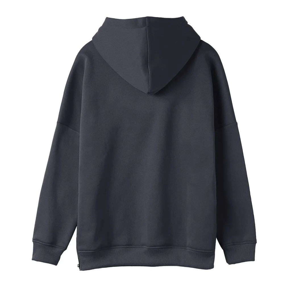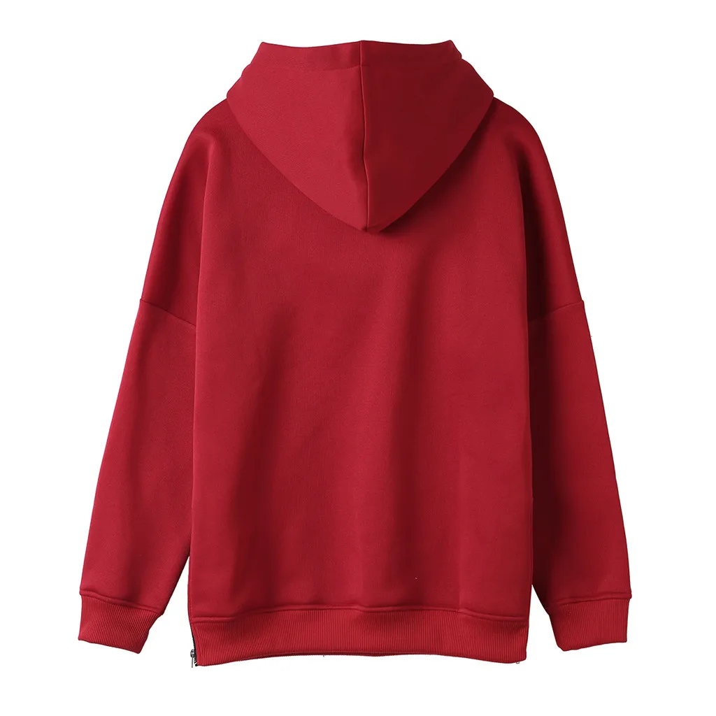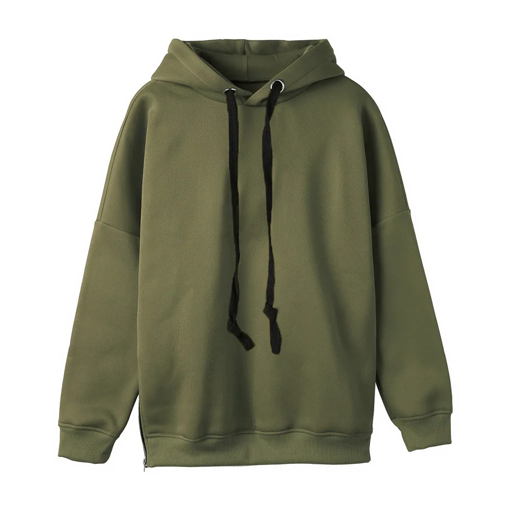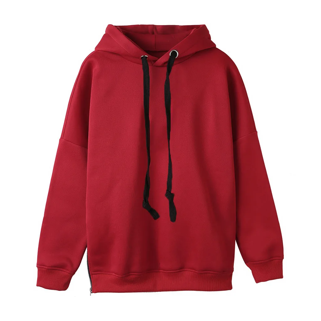 Женская однотонная толстовка на молнии с длинным рукавом с капюшоном, пуловер с капюшоном, топы, блузка