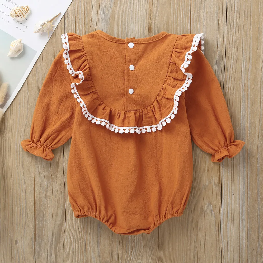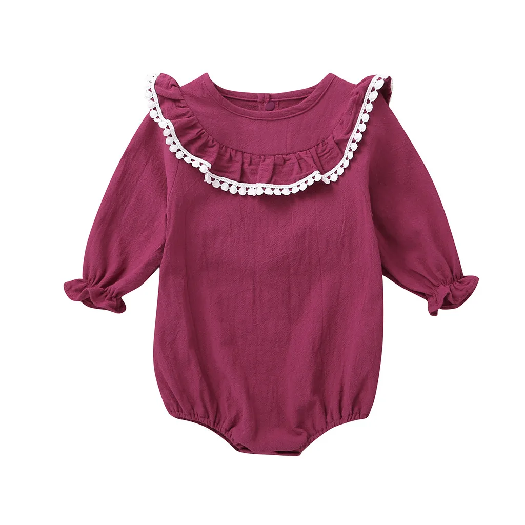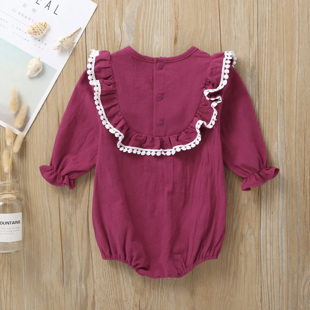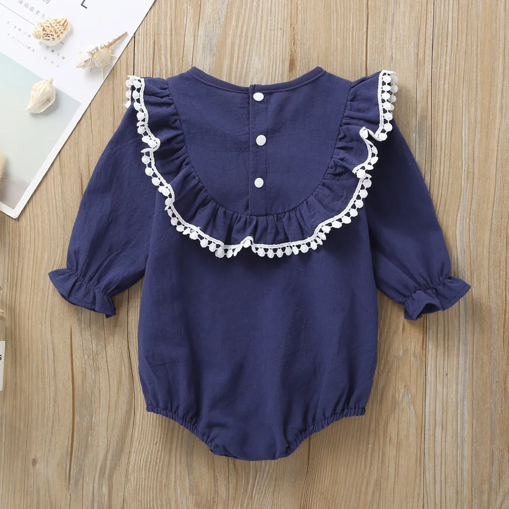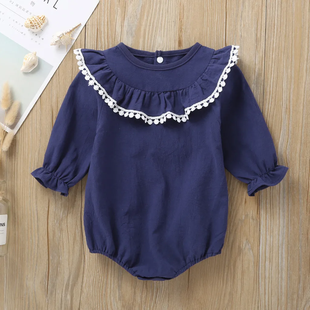 Детский однотонный комбинезон с кукольным воротником и оборками для маленьких девочек; боди; повседневная одежда