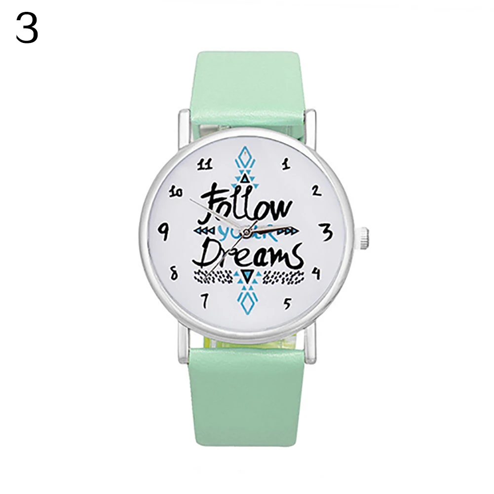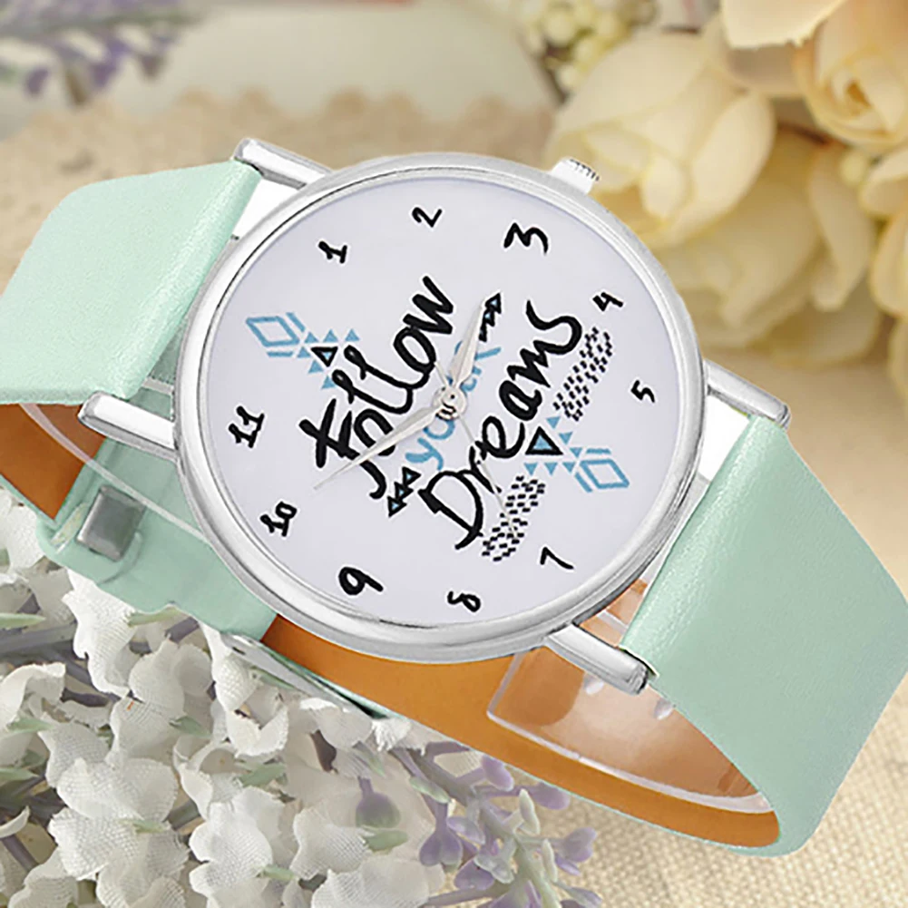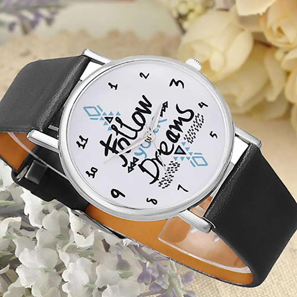 Женские повседневные часы с принтом Follow Your Dream с принтом с цитатой из искусственной кожи ремешок кварцевые наручные часы