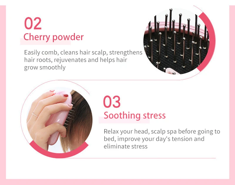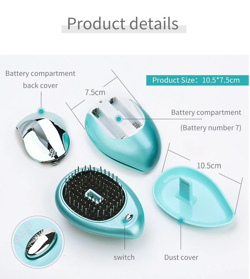 При открытии вибрирующего переключателя расческа будет вибрировать массаж и высвобождать отрицательные ионы одновременно, расчесывая волосы, стимулируя кровообращение кожи головы, чтобы вы чувствовали себя более комфортно и улучшали здоровье ваших волос