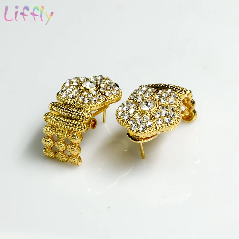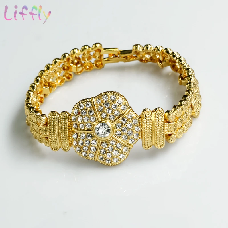 Ювелирные изделия из Нигерии Набор золотое солнце цветочный кристалл роскошное многослойное ожерелье серьги браслет индийские ювелирные изделия арабское ювелирное изделие для женщин
