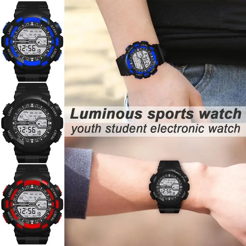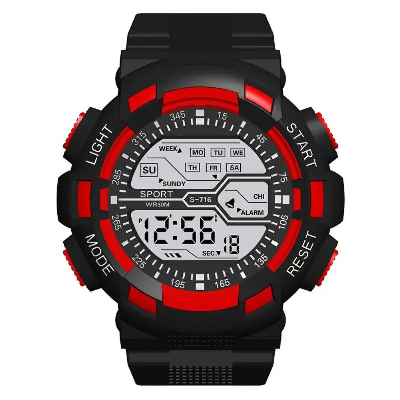 Водонепроницаемый спорт круглый циферблат цифровые часы Повседневное Для женщин Для мужчин ремешок для TPU световой студент электроники наручные часы
